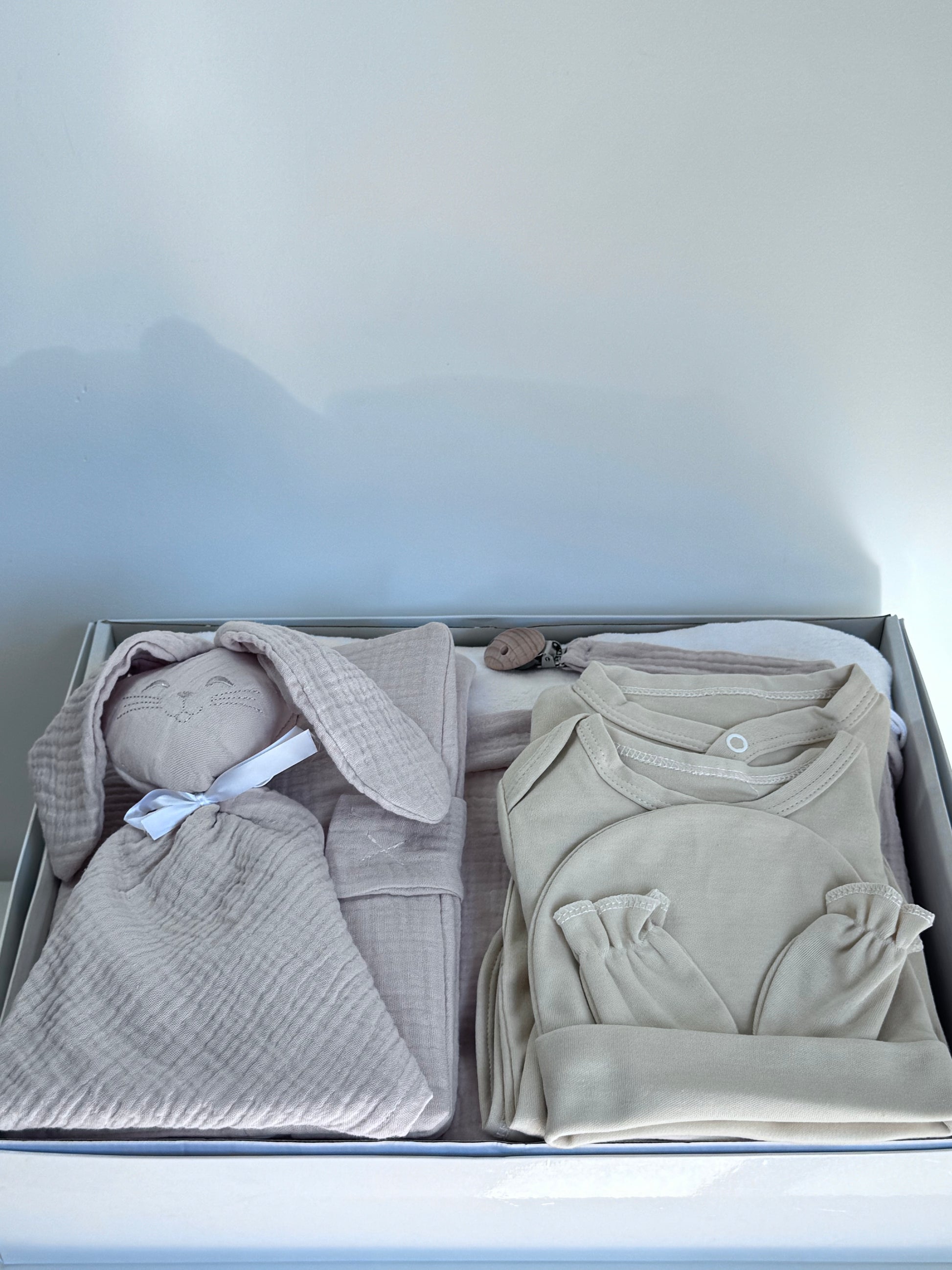 Offrez le cadeau parfait pour célébrer l’arrivée de bébé avec notre coffret naissance personnalisé, composé d’accessoires pratiques, doux et entièrement personnalisables. Un cadeau de naissance original, utile et rempli d’émotion que les jeunes parents garderont précieusement.