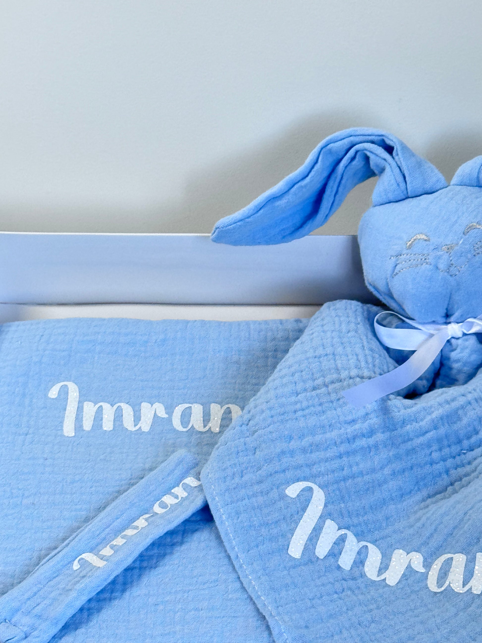 Offrez un cadeau de naissance unique et personnalisé avec notre coffret naissance Melima Atelier. Un ensemble élégant et utile composé de trois indispensables pour bébé : protège carnet de santé, doudou et attache tétine, tous personnalisables avec le prénom de l’enfant.