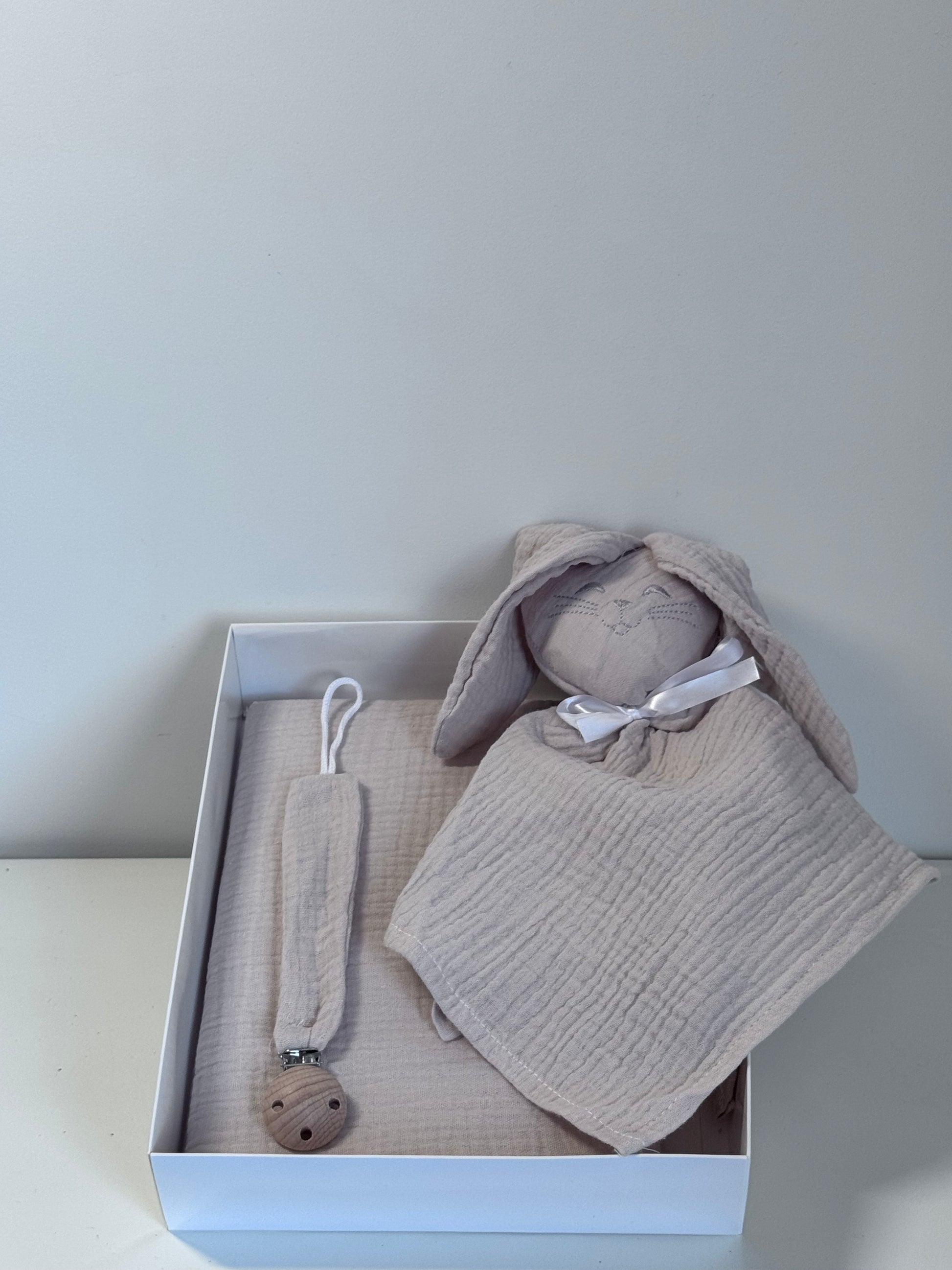 Coffret Carnet de Santé + Attache Tétine + Doudou lapin
