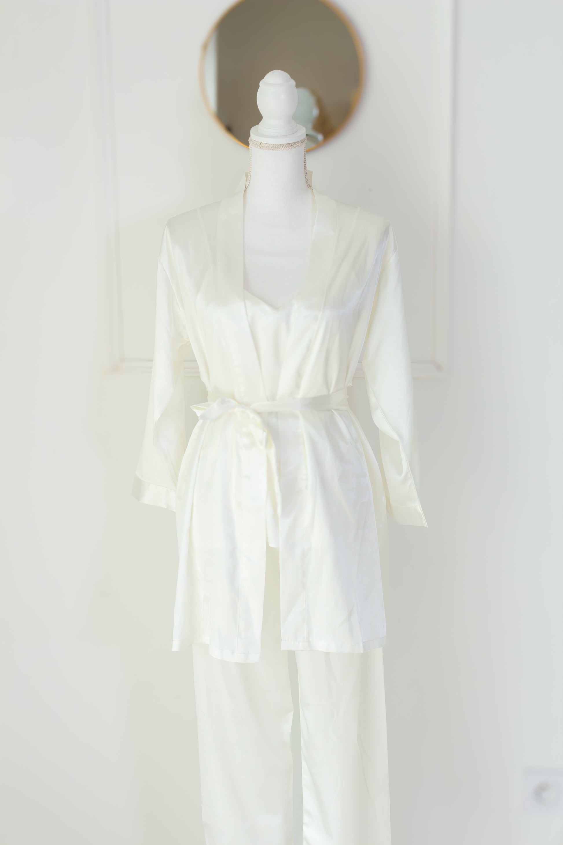 Pyjama satiné 3 pièces – Débardeur, pantalon & peignoir
